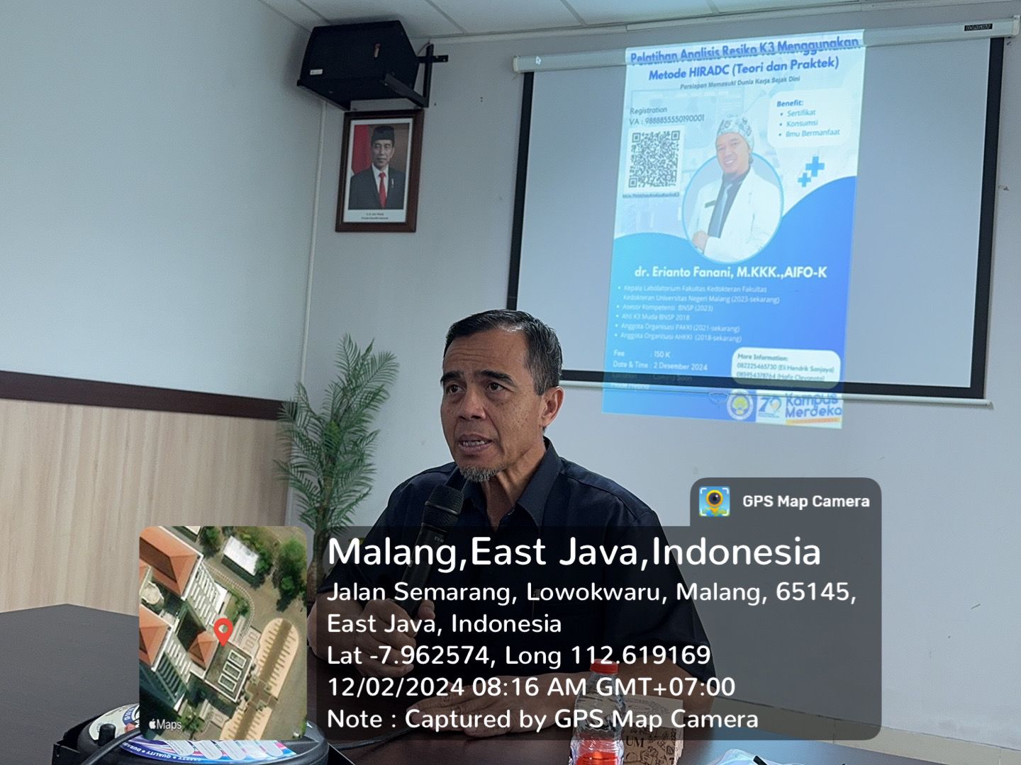 Narasumber pada pelatihan ini adalah dr. Erianto Fanani, seorang praktisi K3 dan dosen Fakultas Kedokteran Universitas Negeri Malang. Dalam pelatihan yang terdiri dari empat sesi ini, dr. Erianto membahas berbagai aspek penting terkait analisis resiko K3, dimulai dengan pengantar mengenai bahaya yang dapat terjadi di lingkungan kerja.