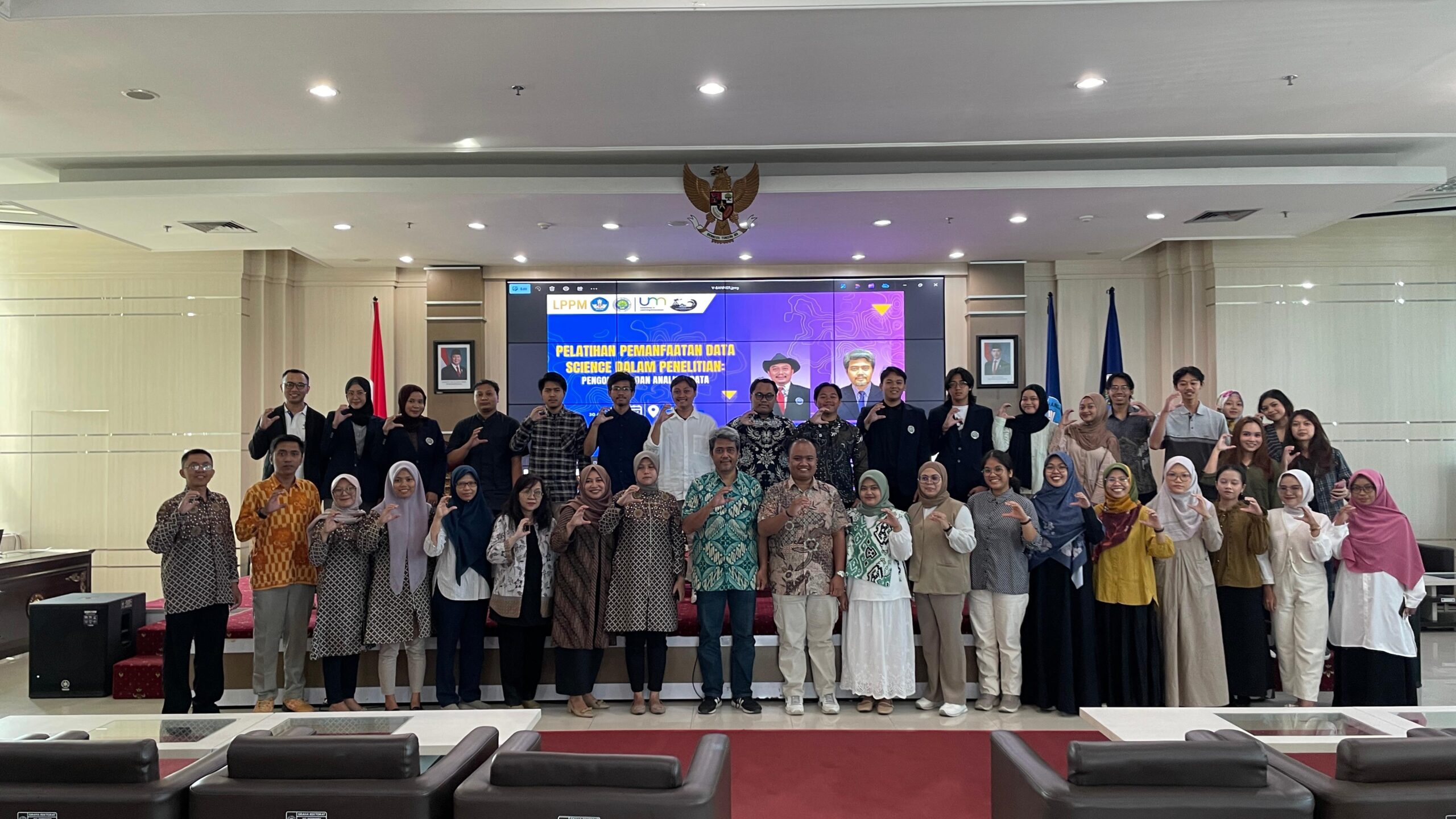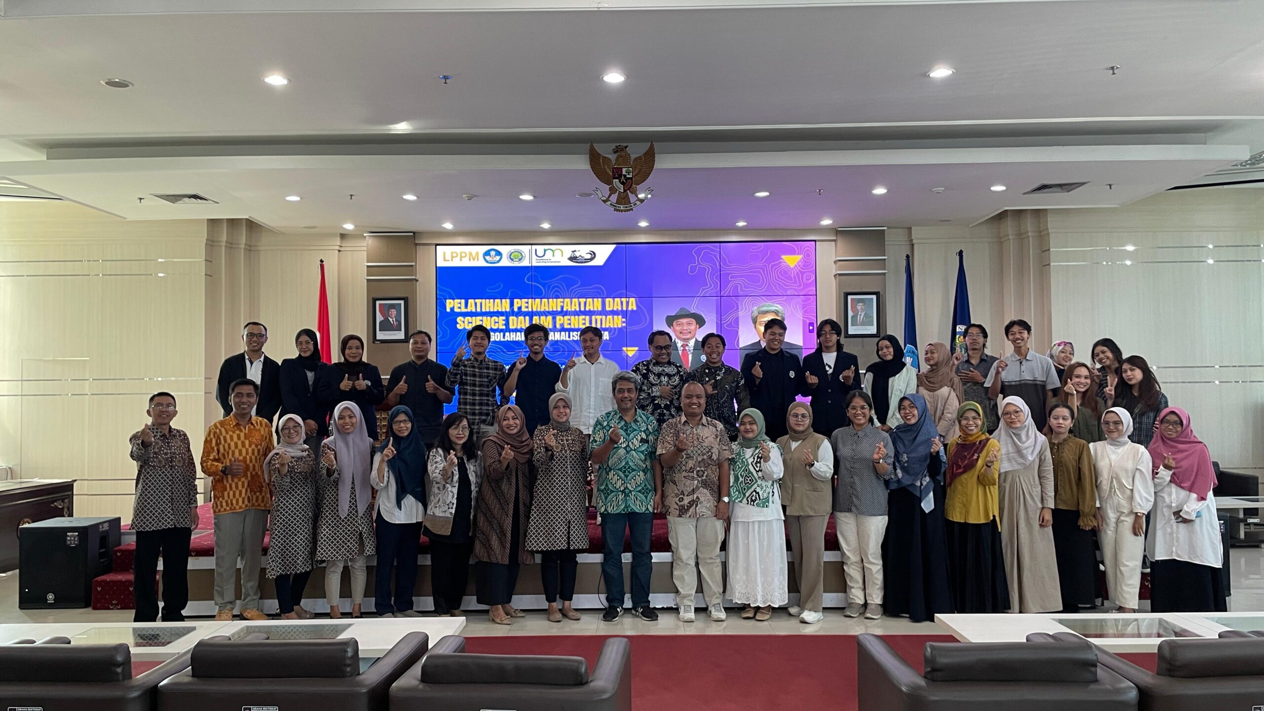 Malang, 30 April 2025 — Pusat Lingkungan, Mitigasi, dan Kebencanaan Lembaga Penelitian dan Pengabdian kepada Masyarakat (LPPM) Universitas Negeri Malang sukses menyelenggarakan kegiatan bertajuk “Pemanfaatan Data Science untuk Pengolahan Data Penelitian” yang dilakukan secara luring di lantai 9 Graha Rektorat UM. Kegiatan ini dilaksanakan secara penuh selama satu hari, mulai pukul 08.00 hingga 16.00 WIB, dan diikuti oleh peserta yang berasal dari berbagai kalangan, meliputi dosen, mahasiswa, hingga masyarakat umum.