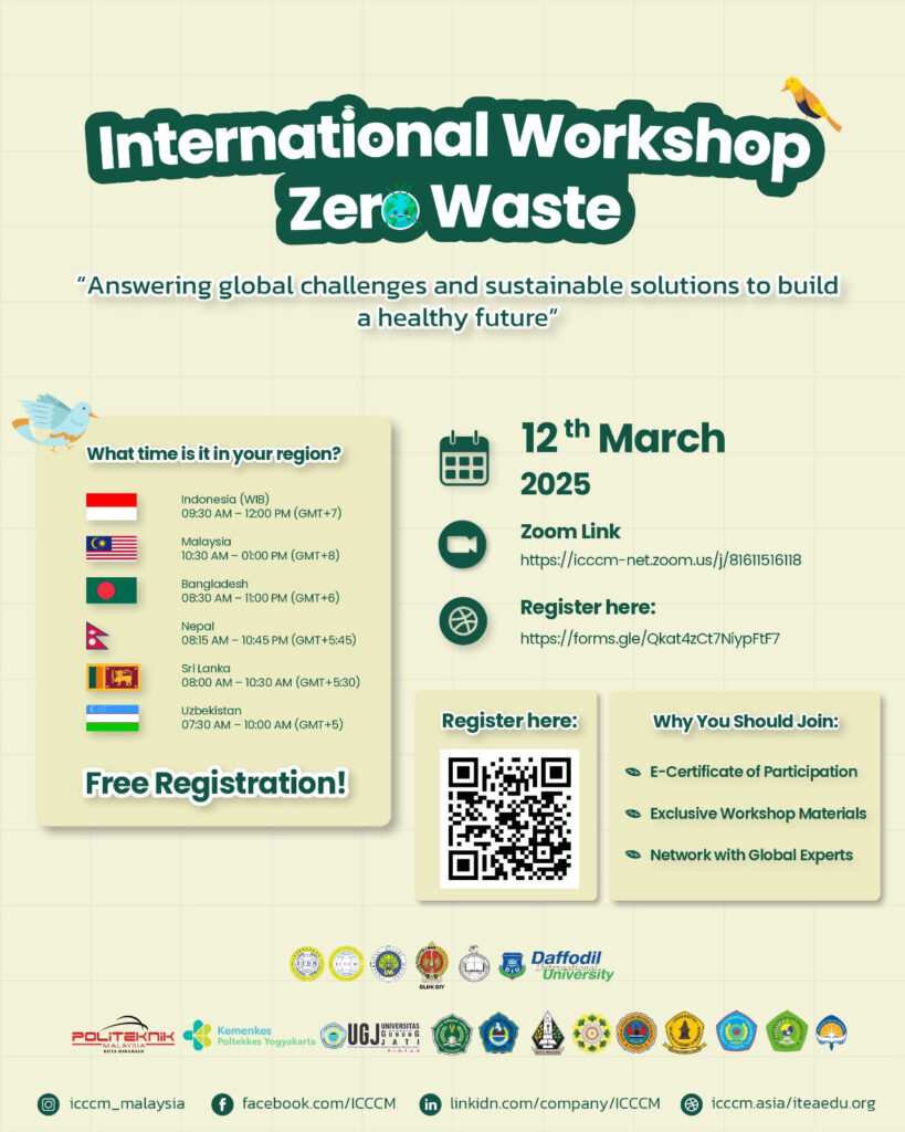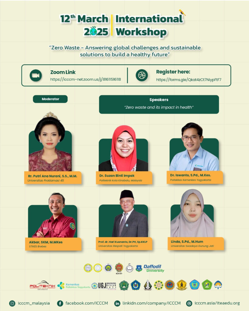 Malang, 12 Maret 2025International Workshop: Zero Waste – Answering Global Challenges and Sustainable Solutions to Build a Healthy Future sukses digelar berkat kolaborasi antara International Conference on Clean and Green Manufacturing (ITEA) dengan Universitas Negeri Malang (UM) serta berbagai mitra akademik dan profesional lainnya. Workshop ini dihadiri oleh 198 peserta dari Indonesia, Sri Lanka, Nepal, Malaysia, Bangladesh, dan Vietnam, yang memiliki perhatian terhadap pengelolaan limbah berkelanjutan dan tantangan lingkungan global.